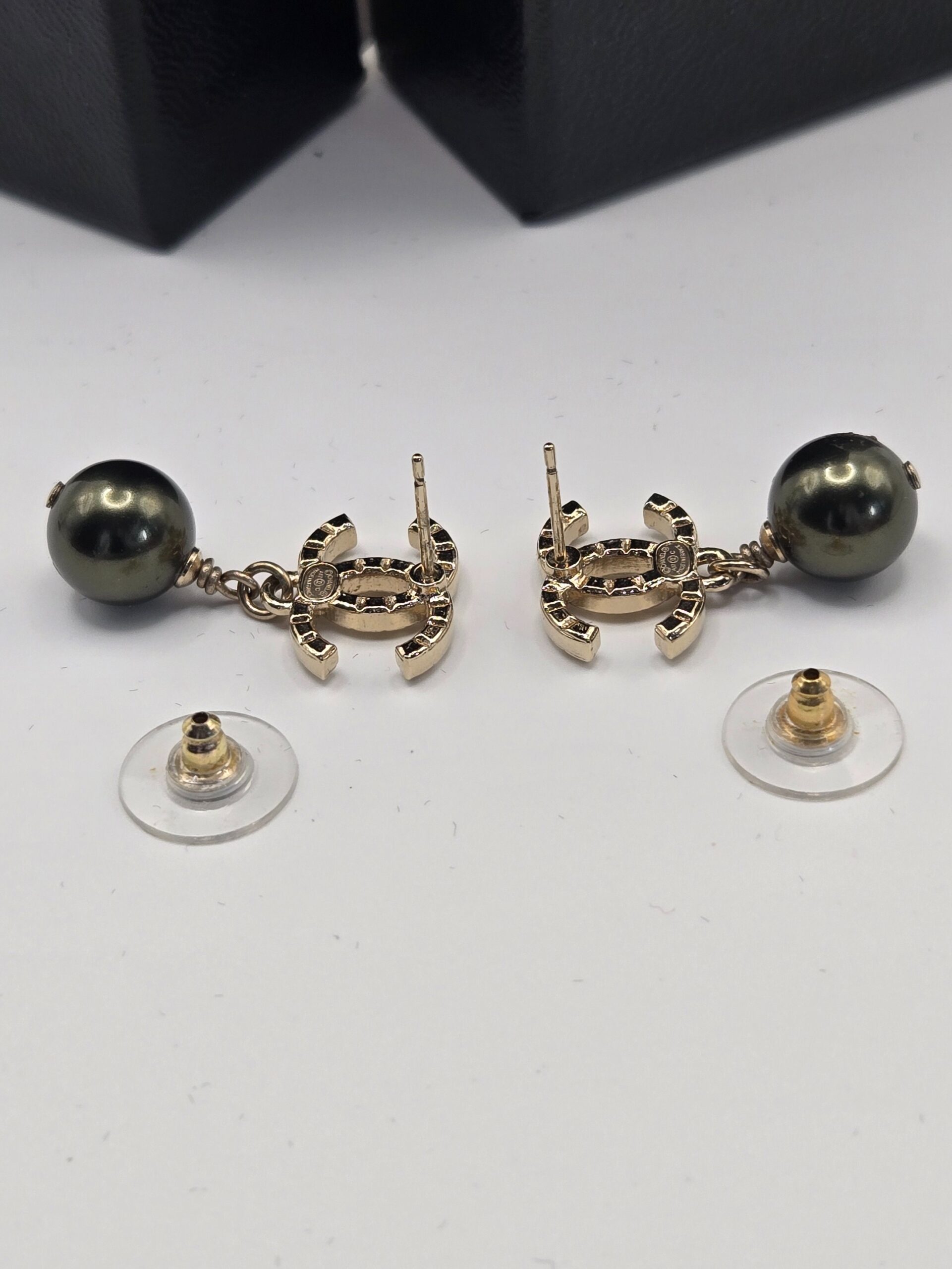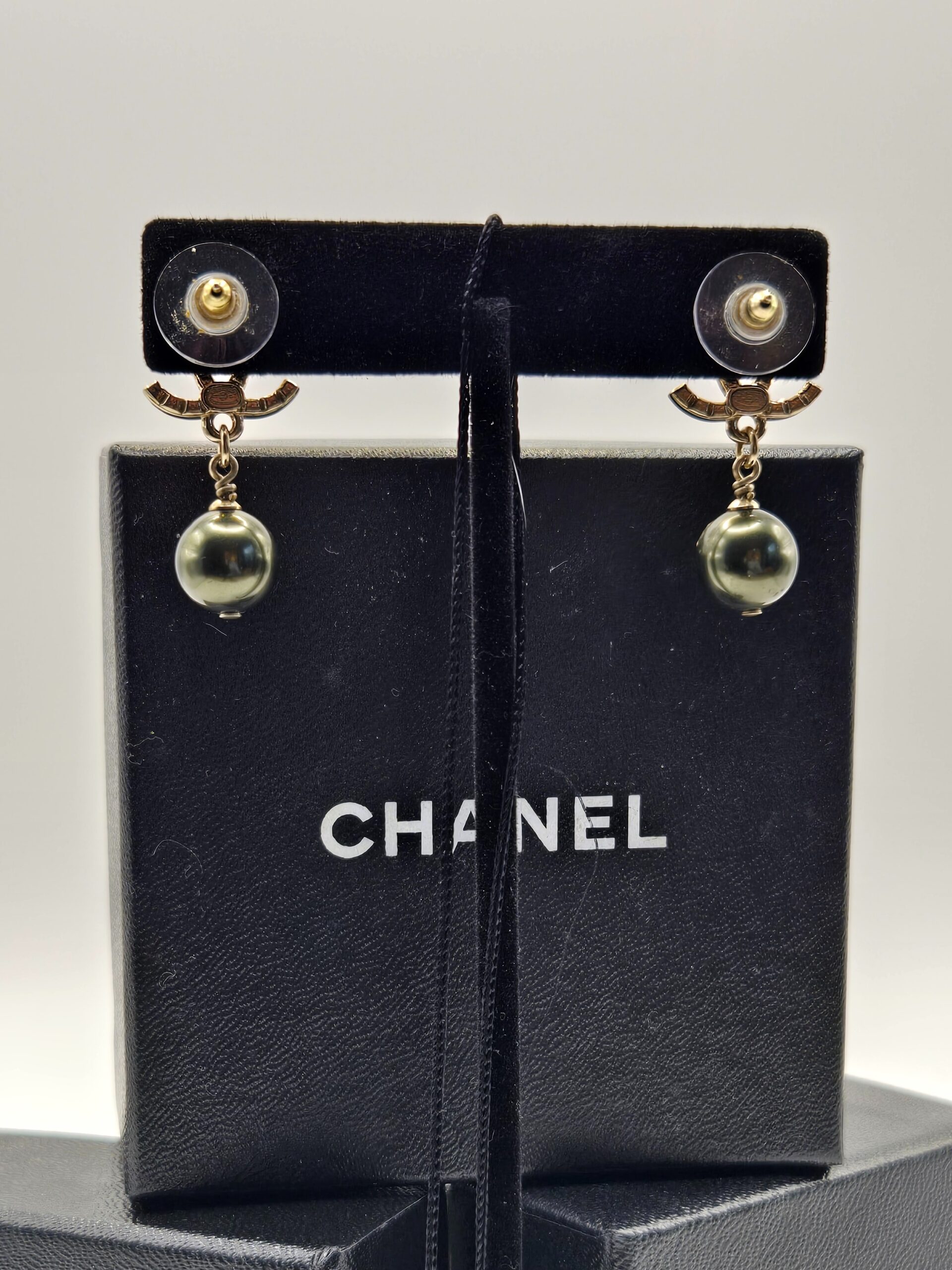 Chanel 17C Gold with Green Ball Drop Pierced Earrings – 1.1″ comes with box
