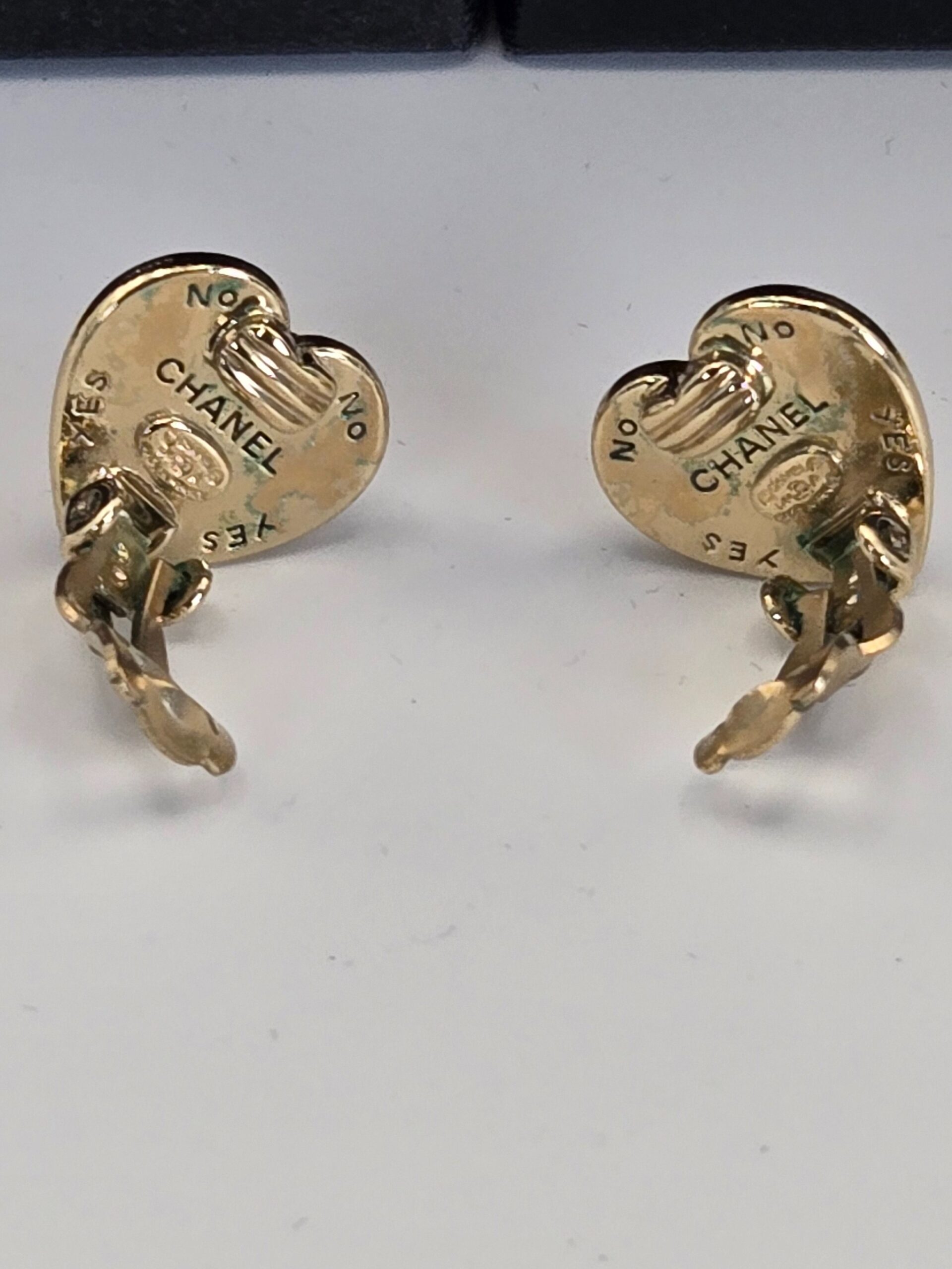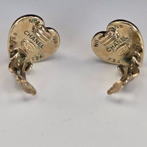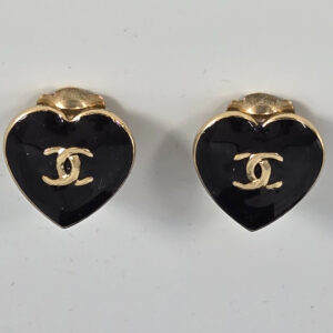 Chanel Black Heart CC Clip-On earrings .6″