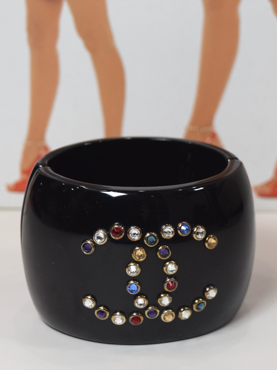 Chanel black resin cuff with multicolor crystal CC Year:11A Size 6.5