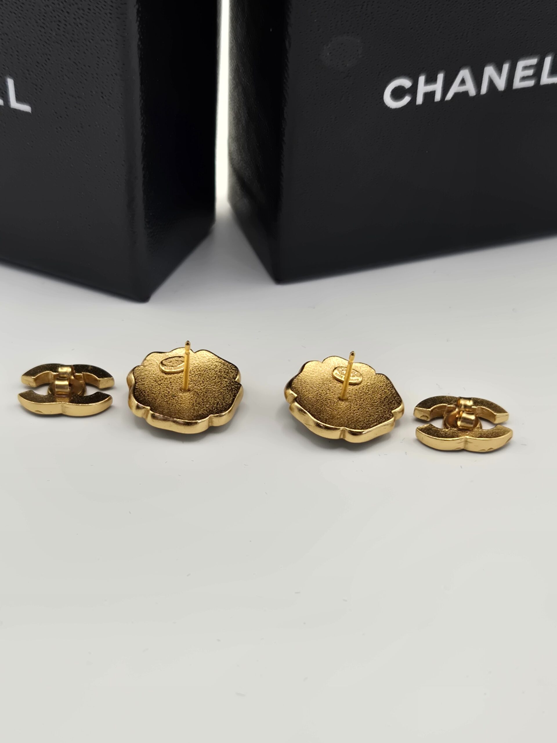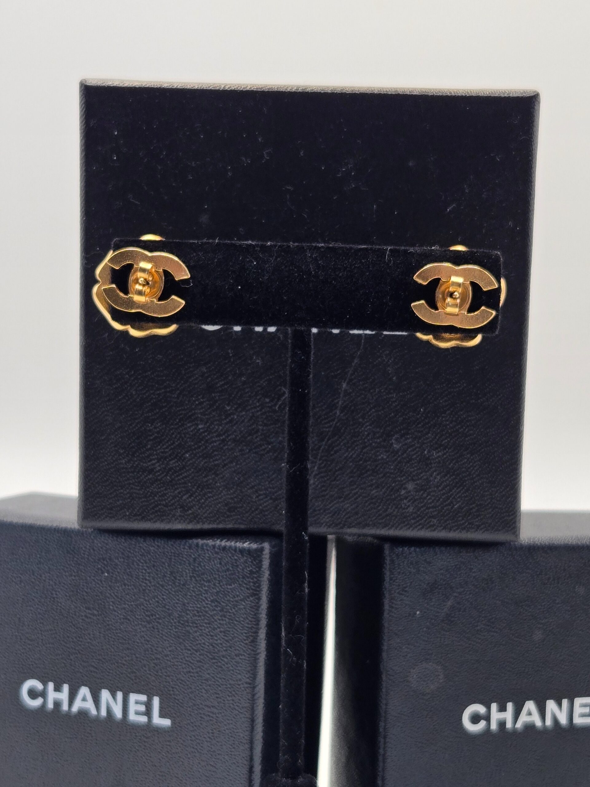 Chanel 14A burgundy and red cabachon with GHW CC pierced earrings .5 (box)