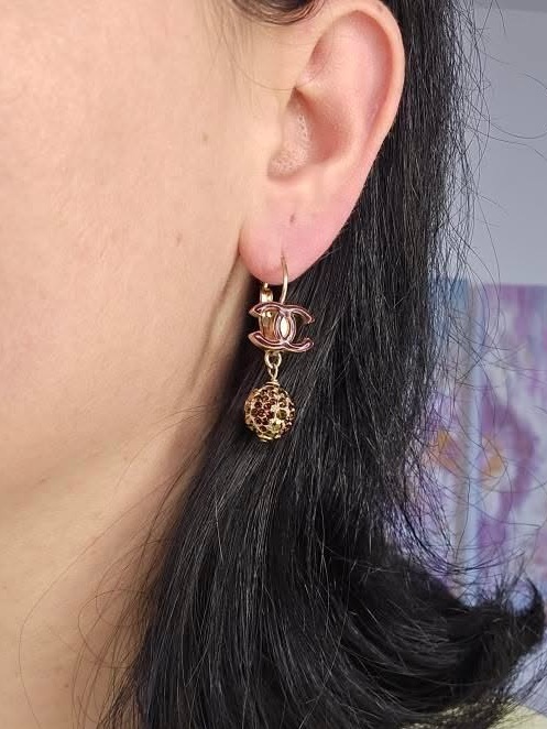 Measuring approximately 1.4 inches in length, these earrings offer subtle movement and sparkle, making them perfect for both everyday wear and special occasions. The combination of colored crystals and classic Chanel branding gives them a timeless yet distinctive appeal.
