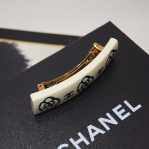 Chanel camellia and CC white with black hair barrette 06P 3.9″