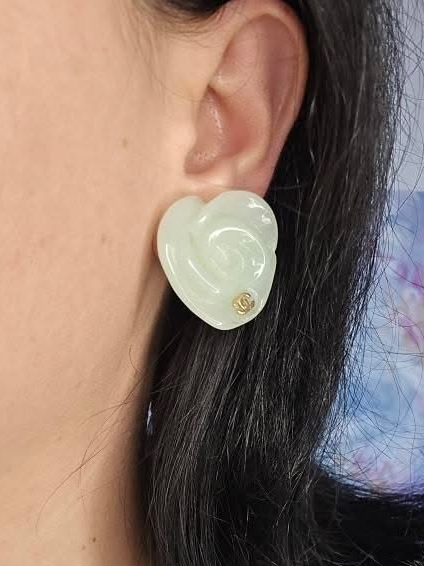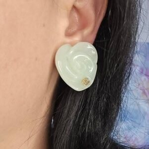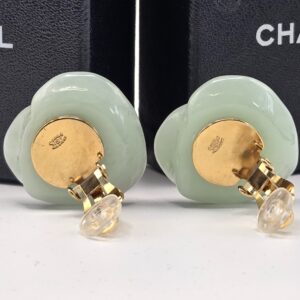 Chanel 02P Camelia earrings featuring the house’s iconic Camelia flower design in a soft light green resin, accented with a subtle CC logo at the base. This elegant and feminine design captures one of Chanel’s most recognizable motifs in a fresh and wearable form.
