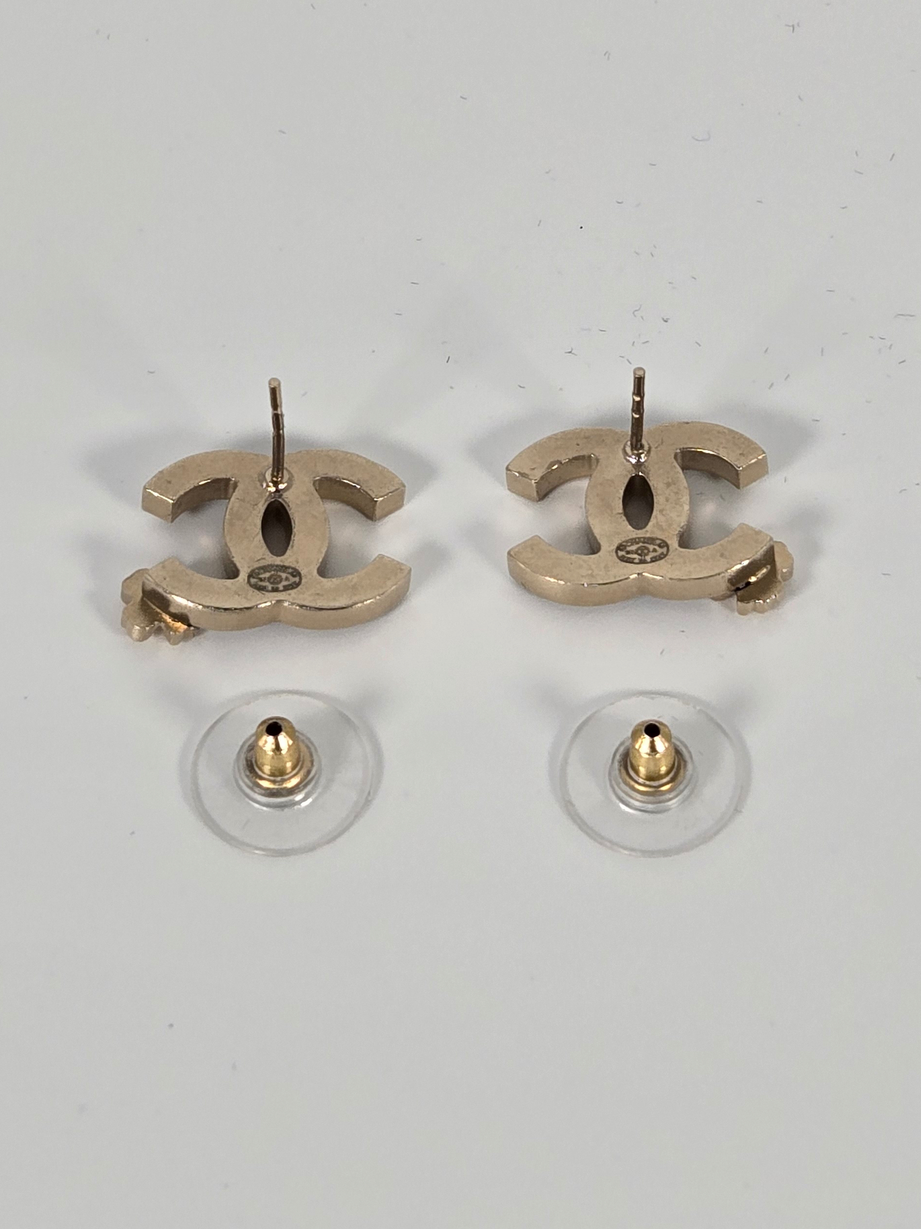 Chanel pierced black CC with small gold clover accent. Year: 12A; 0.6″