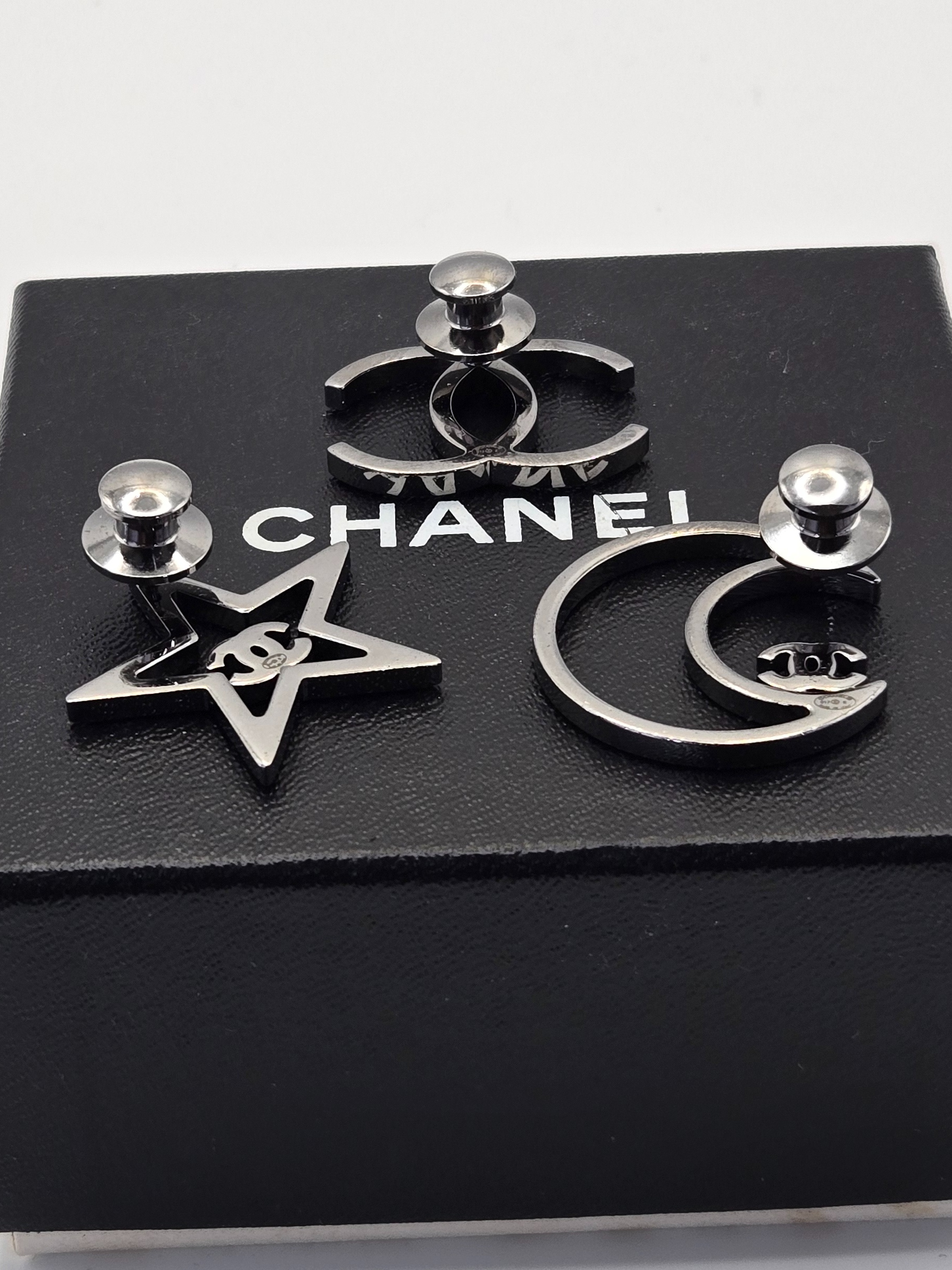 Chanel CC, Star and Moon Pins . Two are 1″ and one is .75″