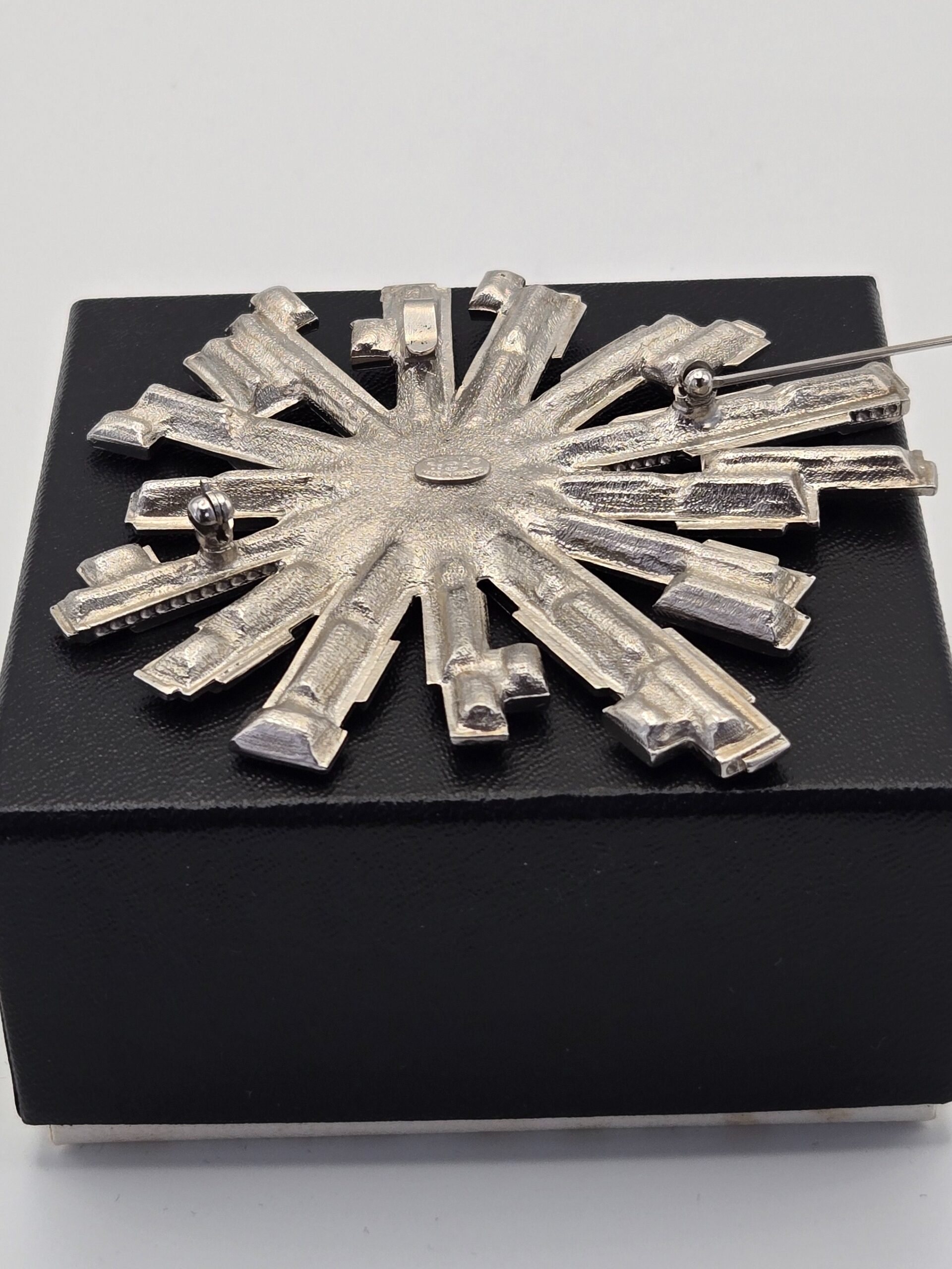 Chanel crystal burst brooch 3″ missing two crystals as shown (jeweler or Chanel boutique can replace)