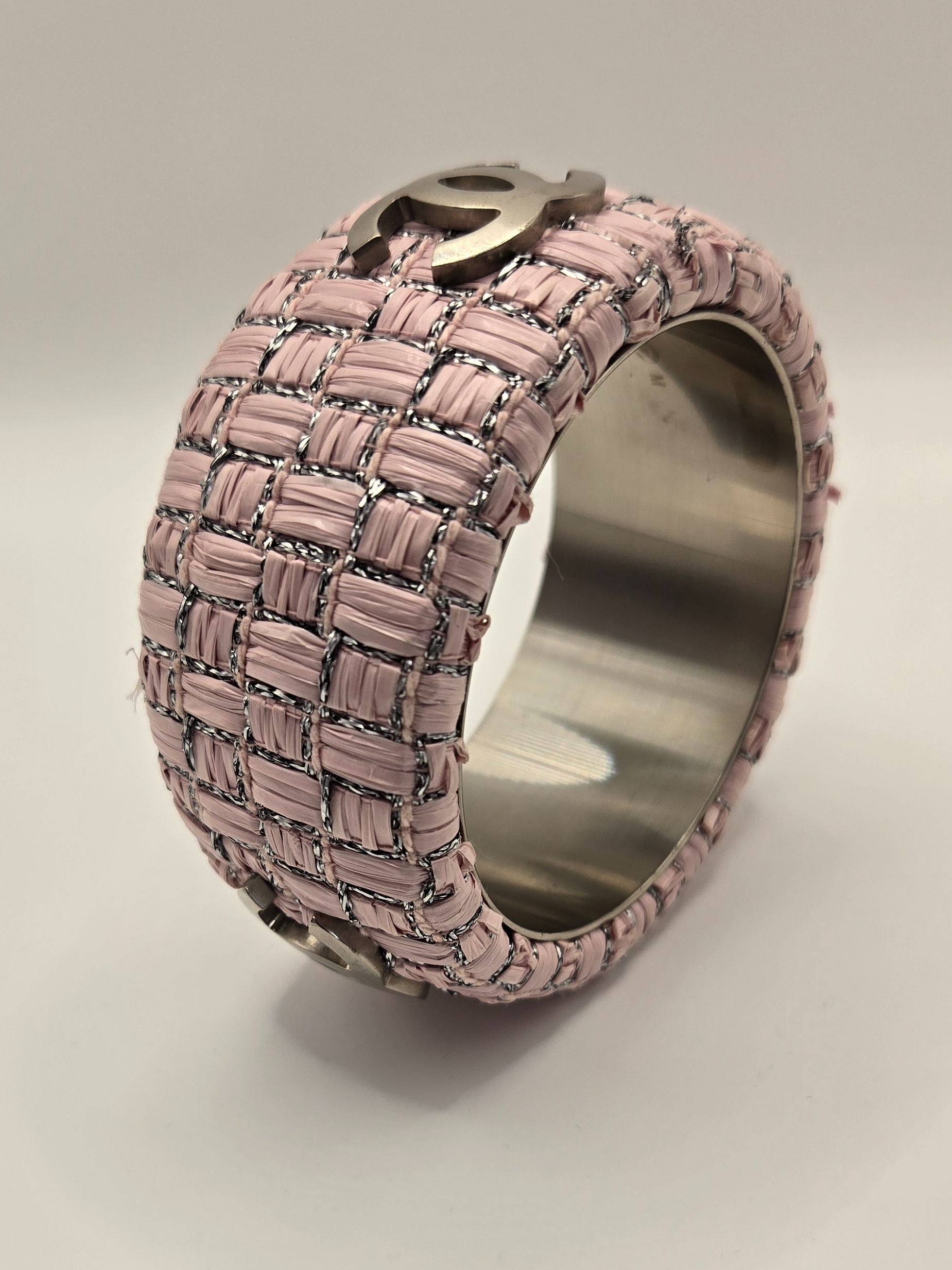 Chanel pink tweed bangle size 8 B14P