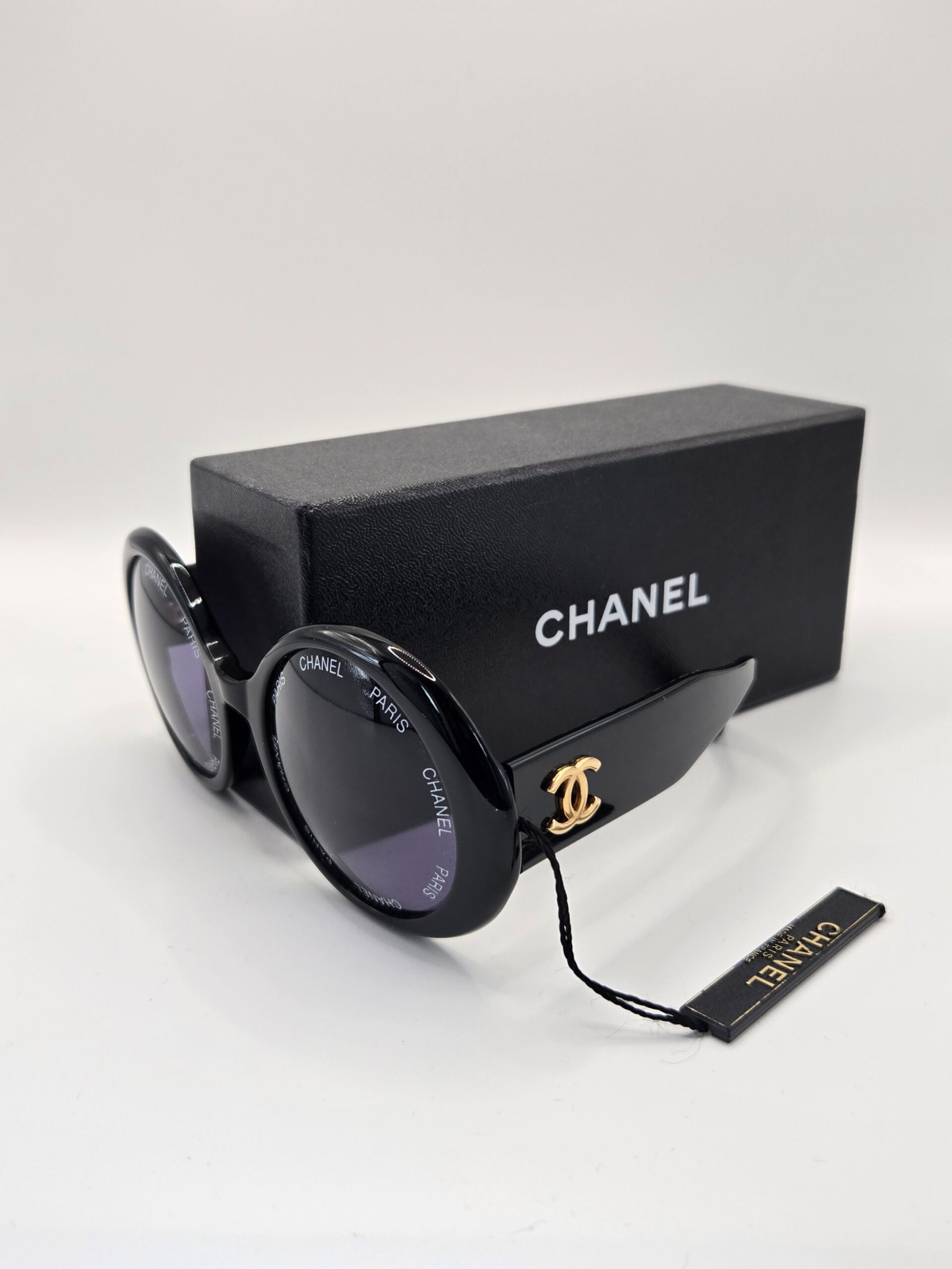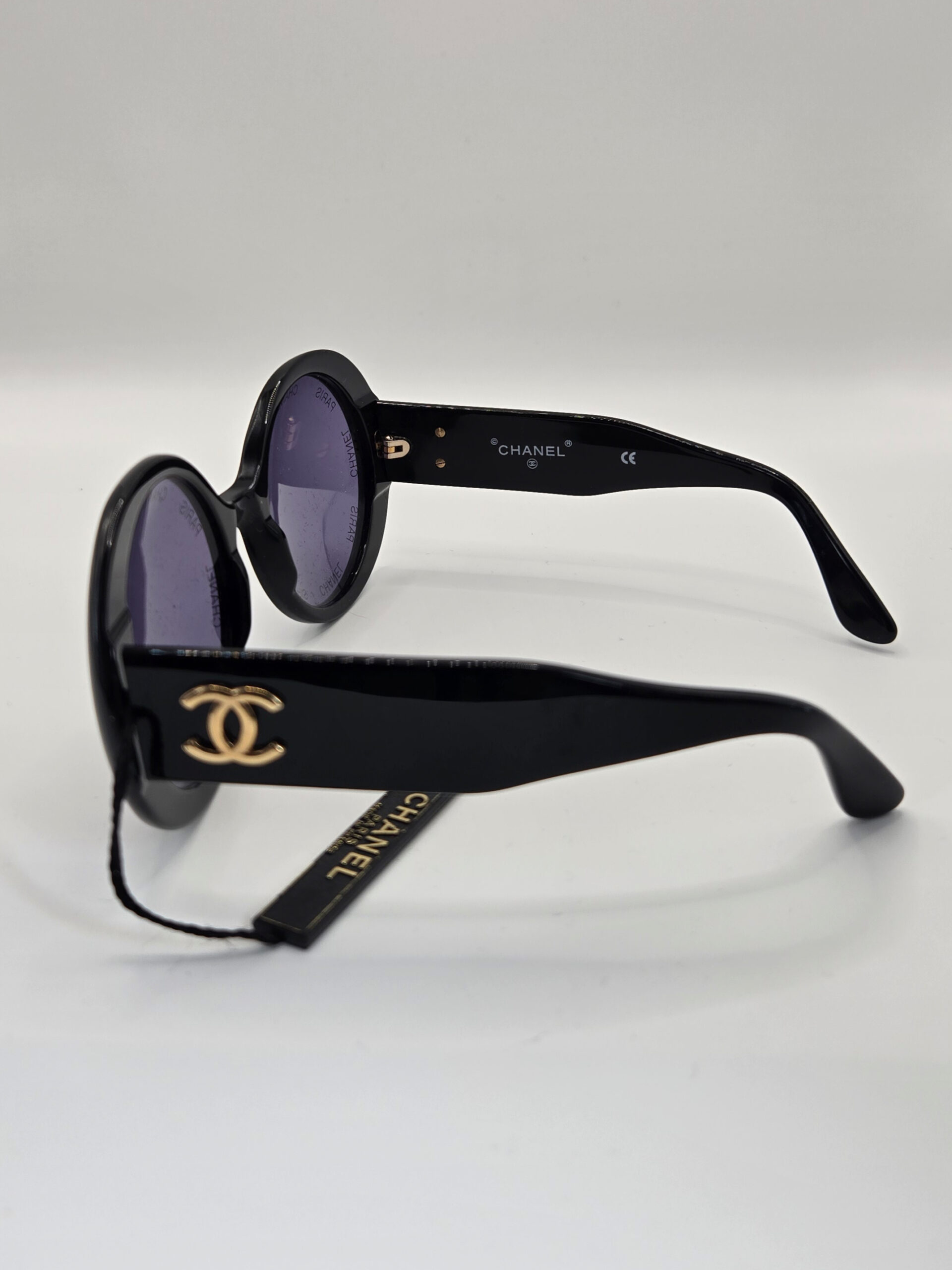 Incredible vintage sunnies as seen worn on Rihanna. Round lenses with Chanel Paris writing. Gold CC on the arms.