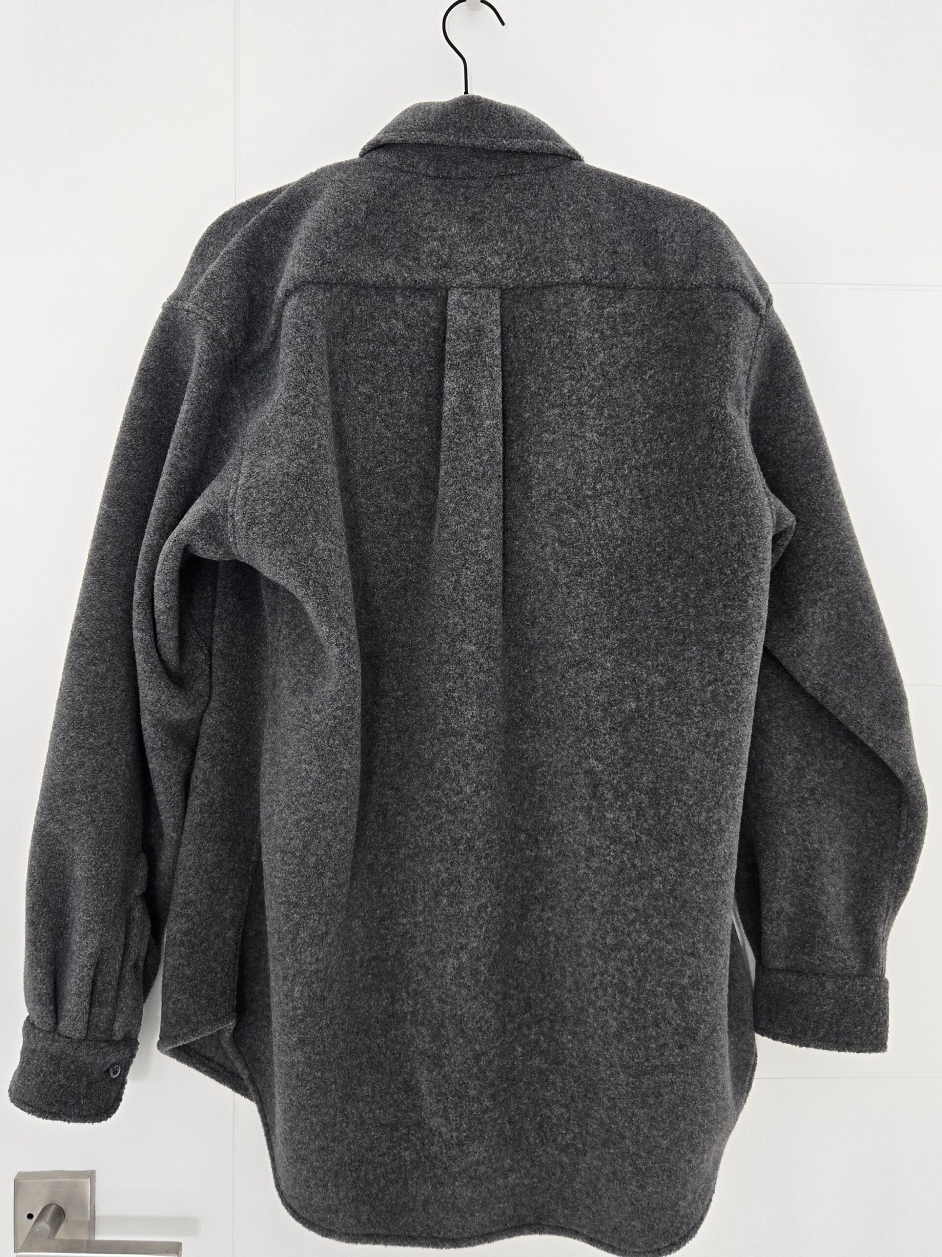 Miu Miu grey flannel top, Size 40, but oversized. 2025. S21 P24.5 L35. 80% polyester, 20% recycled polyester